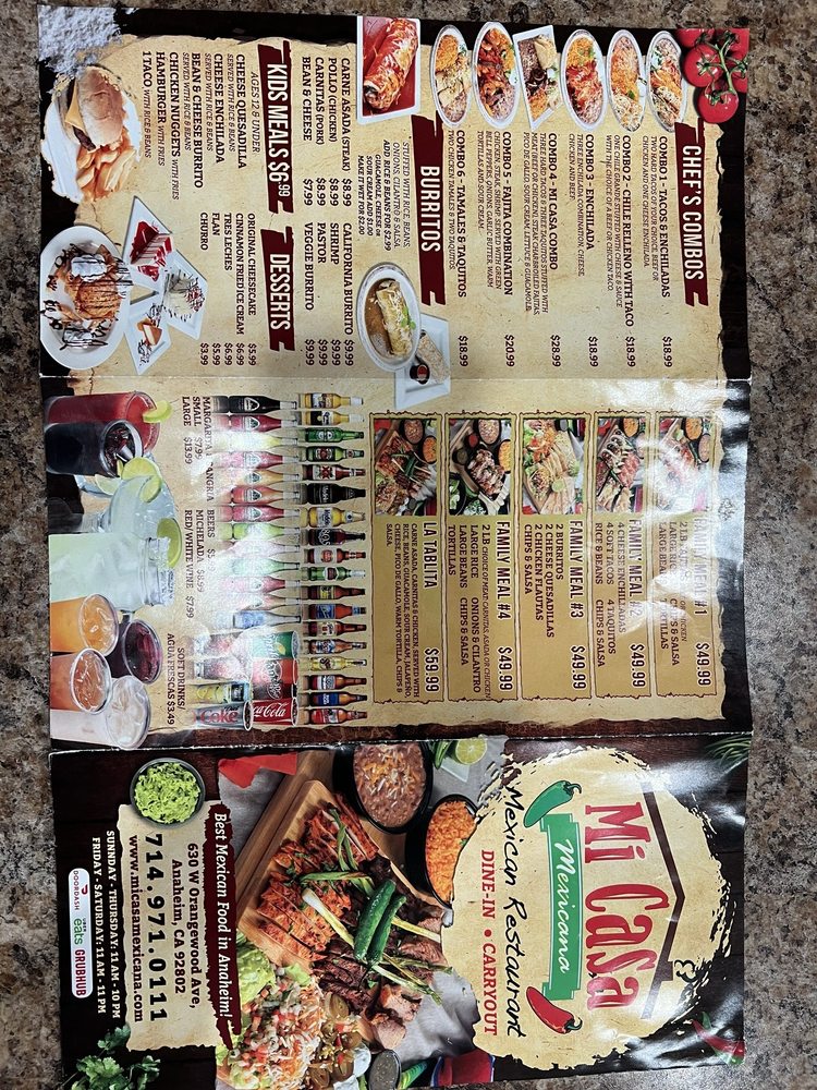 Mi Casa Mexicana is a Mexican restaurant located in Anaheim, CA, offering a variety of dishes with limited vegetarian options. They provide delivery, takeout, and catering services, making it convenient for different dining preferences. Customers have praised their fantastic service and flavorful dishes like Menudo and taco plates. The ambiance is cozy and welcoming, suitable for both quick meals and gatherings. Their menu includes favorites like Chicken Flautas and Carne Asada, served with beans, rice, and other delicious sides. Despite some noise issues during busy times, the overall dining experience at Mi Casa Mexicana is satisfying. Prices are reasonable, considering the portion sizes and quality of the food. Enjoy a taste of authentic Mexican cuisine at Mi Casa Mexicana for a satisfying dining experience.